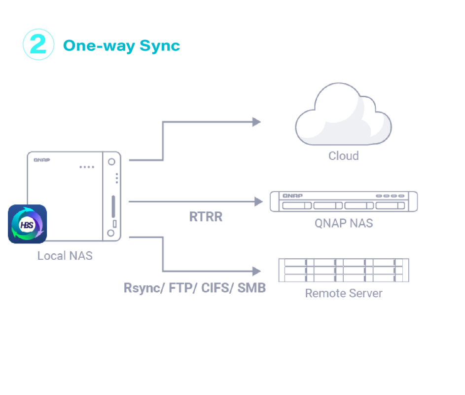1. پشتیبانگیری چندمنظوره :HBS از روشهای مختلفی مثل RTRR، Rsync، FTP، WebDAV، CIFS/SMB پشتیبانی میکند، بنابراین شما میتوانید دادهتان را به NAS دیگر، سرور ریموت یا فضای ابری منتقل کنید.